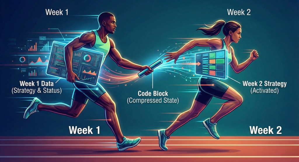 The AI then reviews our strategy and spits out a structured block of text—a “save state.” On Saturday morning, I open a fresh, clean thread (maximum token availability) and paste that Activation Block.